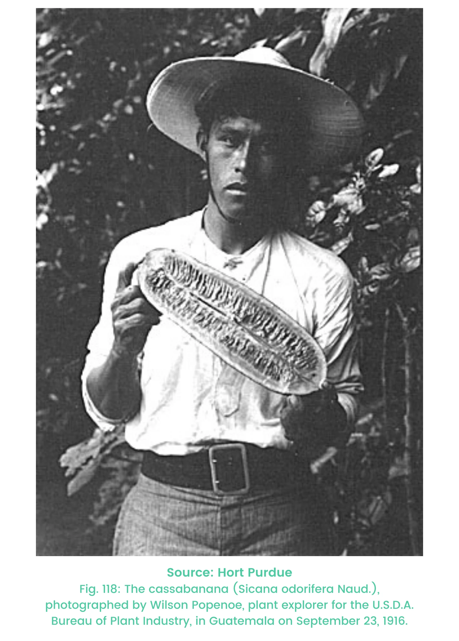 At first blush, the Cassabanana plant seems stranger than fiction: It is not a banana; rather, it is in the Cucurbitaceae (cucumber) family. Sicana odorifera is also commonly known as casbanan, sikana, puttigel and musk cucumber— among others —but none of its given names seem quite right. This plant is a perennial fruiting vine that can also be cultivated as a long-season annual. It bears enormous, 2-foot-long fruit, with a hard shell that can range in color from orange-red, to maroon, to jet-black, to dark purple. The inside is made up of a sweet, yellow fruit similar to cantaloupe.