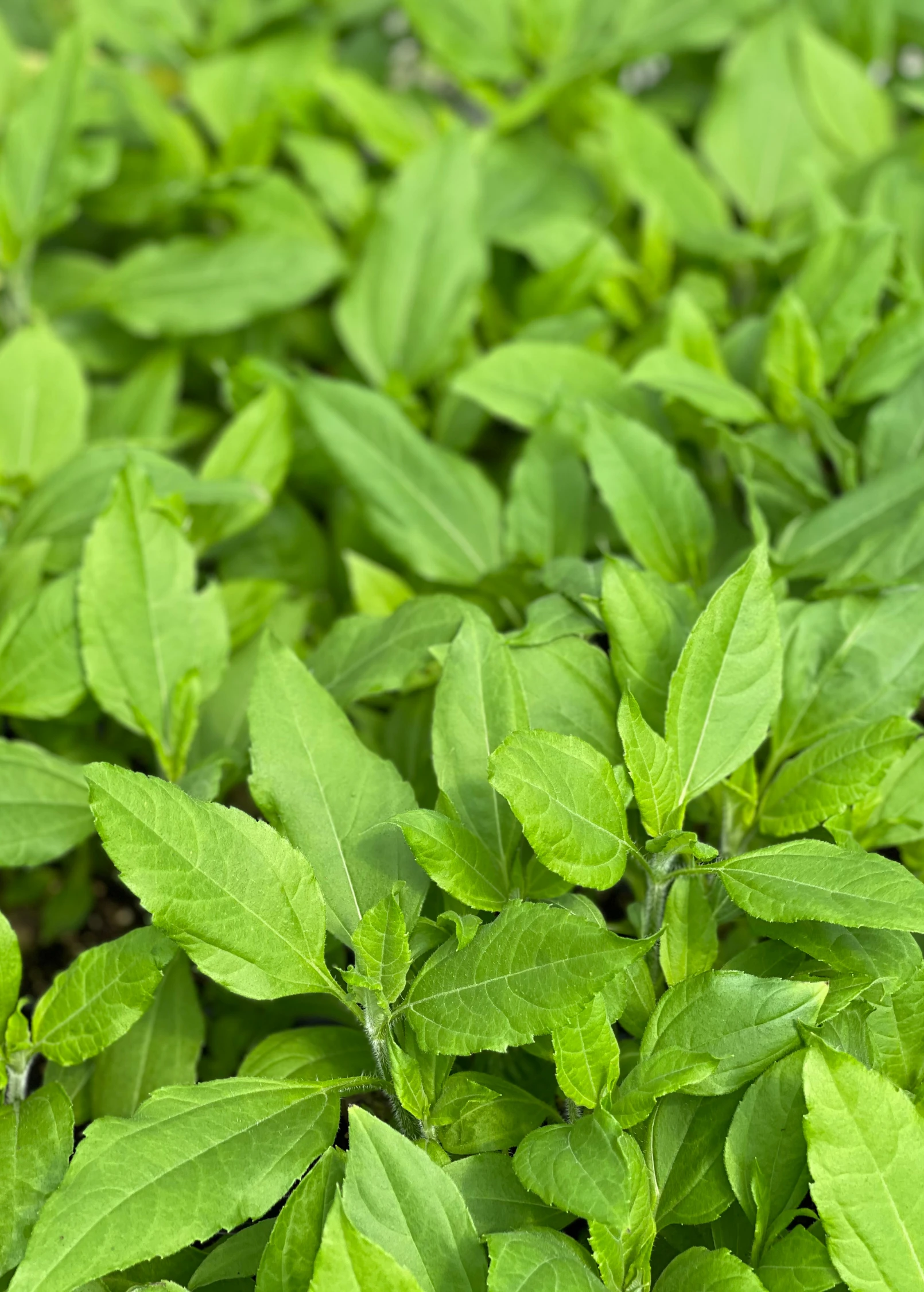 Jerusalem Artichoke (Helianthus tubersosus), also known as Sunchoke, is a plant with keen survival instincts. Above the ground, Jerusalem Artichoke boasts beautiful towering, classic sunflower look-alikes. Below the earth, however, the plant reveals large edible and nutritious tubers! Think ginger meets potato. They’re not related artichoke, but have a distinctly delicious artichoke-like flavor. Hence the nickname, Sunchoke (Sunflower + Artichoke!)